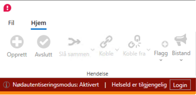 Ved aktivert nødautentiseringsmodus, bør operatører unngå å logge seg ut dersom de går til pause. Ved vaktbytte må påtroppende operatør logge seg på med sin personlige AD-bruker, så lenge nødautenstiseringsmodusen er aktivert.