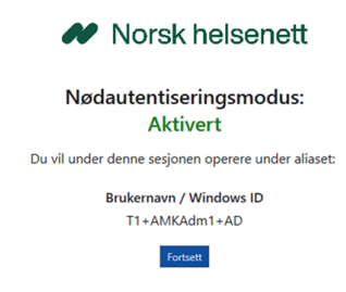 2. Når nødautentisering er aktivert av NHN, kan brukeren logge inn med sin personlige ADbruker: