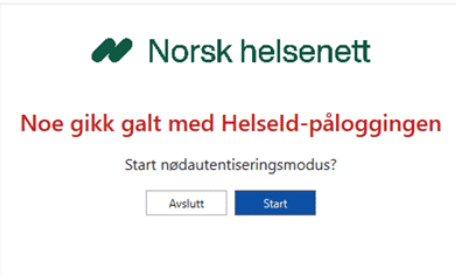 Nødautentisering: Er en midlertidig påloggingsløsning som brukes ved feil i ordinær autentisering.