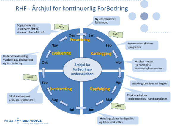 Medarbeider- og pasientsikkerhetskulturmålingen «ForBedring» gjennomføres årlig i alle helseforetak. I undersøkelsen kartlegges forhold ved pasientsikkerhet og arbeidsmiljø som kan ha sammenheng med risiko for uønskede hendelser. Oppfølging av resultatene gjøres lokalt med bevarings- og forbedringstiltak.